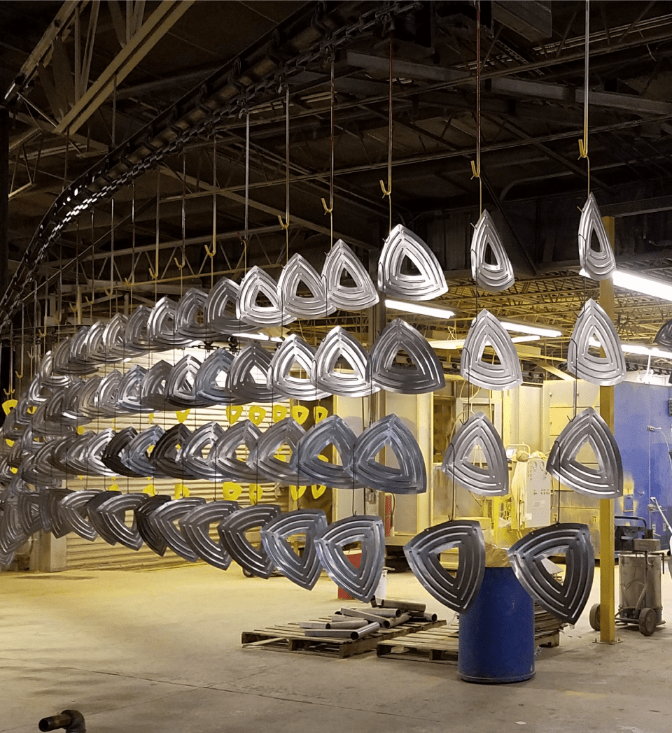 As owners of some of the largest and most powerful machinery in the Midwest, we’re able to cut one inch thick steel and shear, bend, roll, and punch whatever you request. The finishing touch is a custom powder coating that makes your parts or equipment really shine.